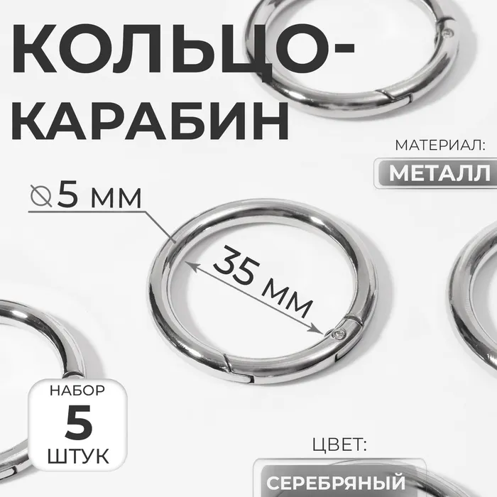 Кольцо-карабин, d=35/45 мм, толщина - 5 мм, 5 шт., цвет серебряный — Характеристики