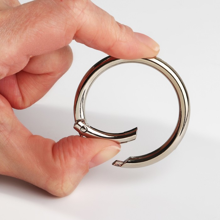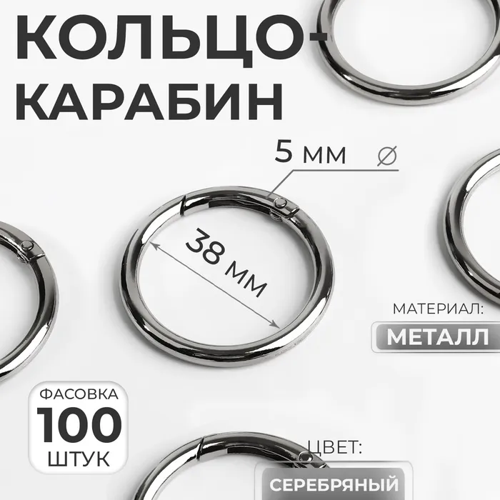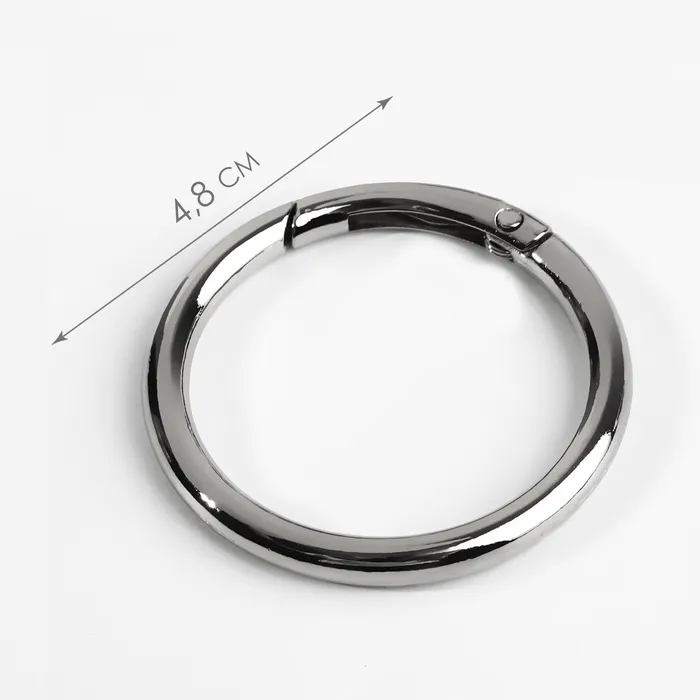 Серебристые кольца-карабины 38/48 мм — это надежные и стильные аксессуары для вашего творчества. Изготовленные из прочного металла, они добавят изюминку вашему ремеслу или повседневному использованию, соединяя функциональность с элегантностью. Легкое открывание и закрывание обеспечивают быструю смену и фиксацию элементов.