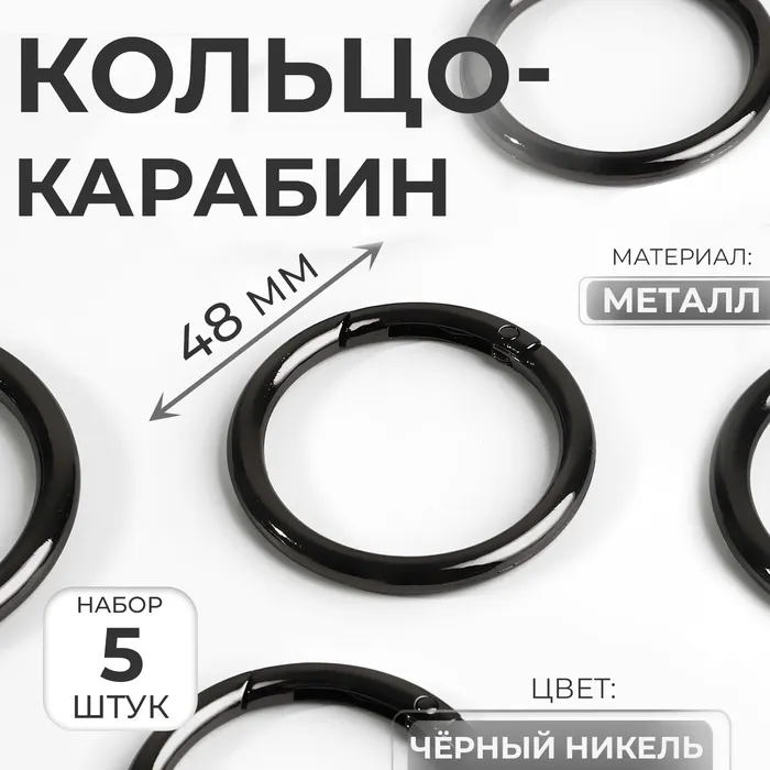 Кольцо-карабин, d=38/48 мм, толщина - 5 мм, 5 шт., цвет чёрный никель — Характеристики