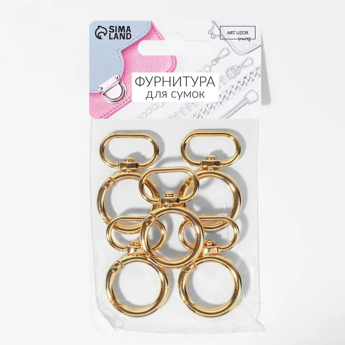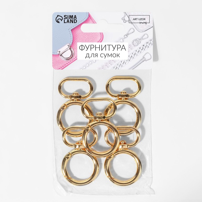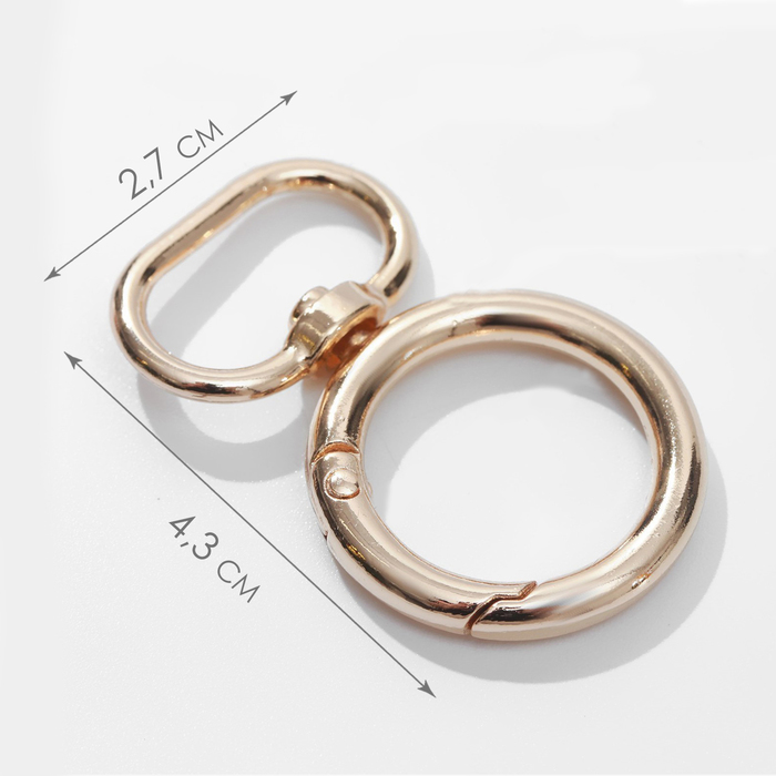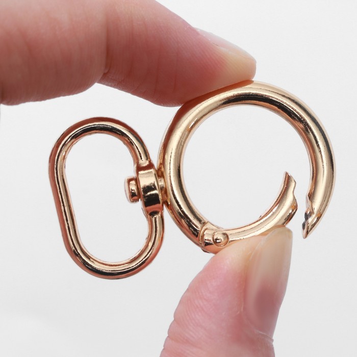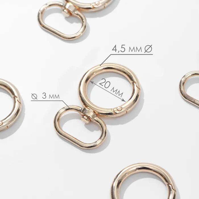 Кольцо-карабин, двойной, d=19/27 мм, толщина - 4 мм, с креплением 20×3 мм, 5 шт., цвет золотой — Характеристики