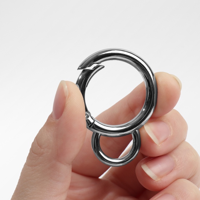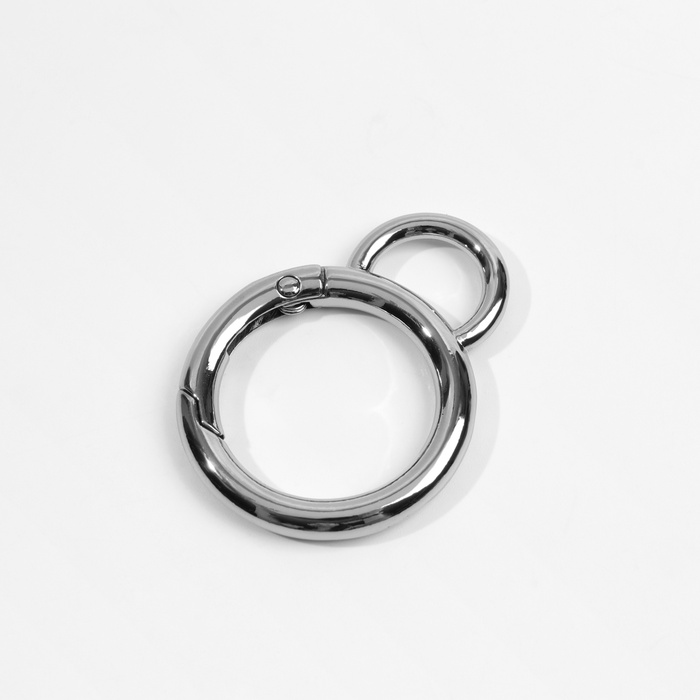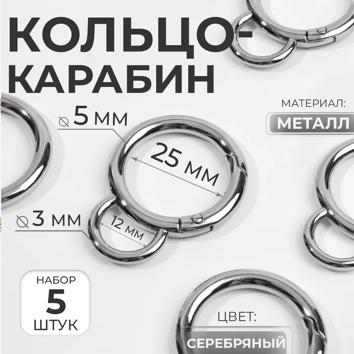 Кольцо-карабин, двойной, d=25/35 мм, толщина - 5 мм, с креплением 12×3 мм, 5 шт., цвет серебряный