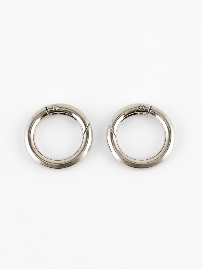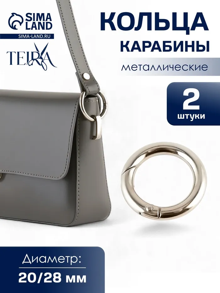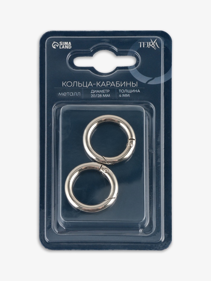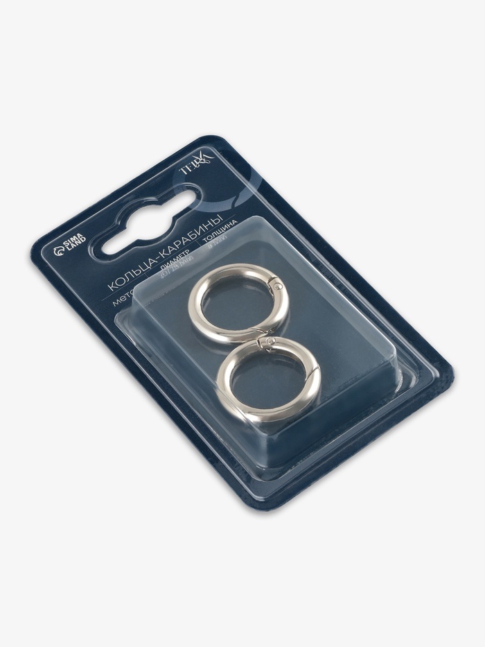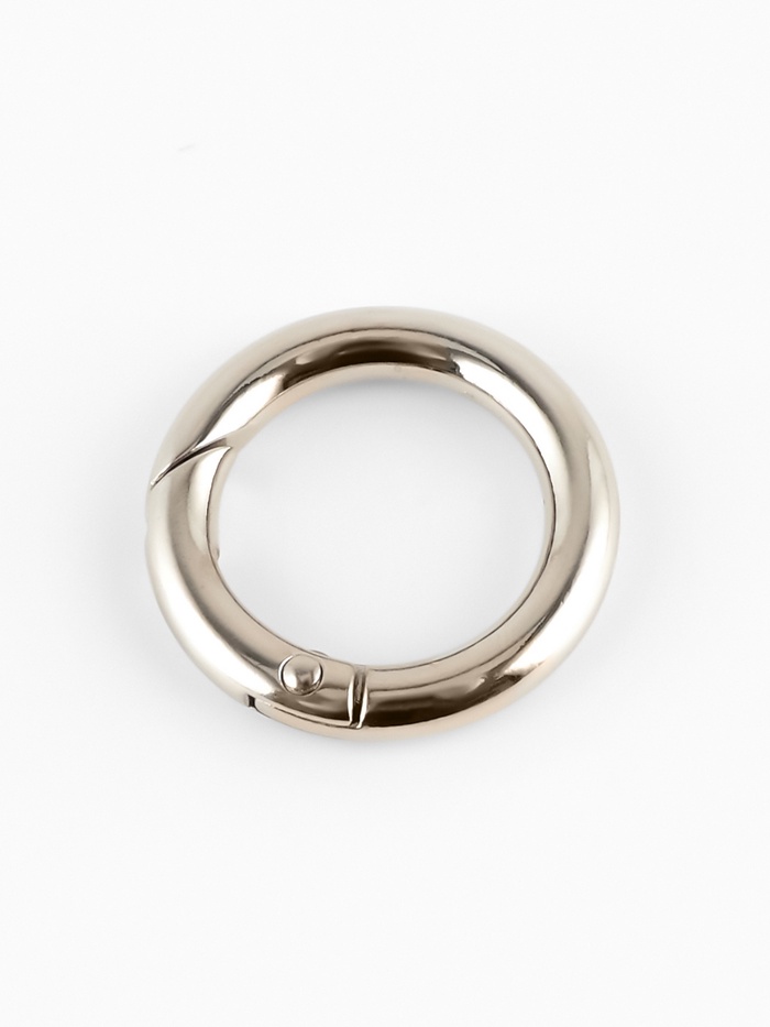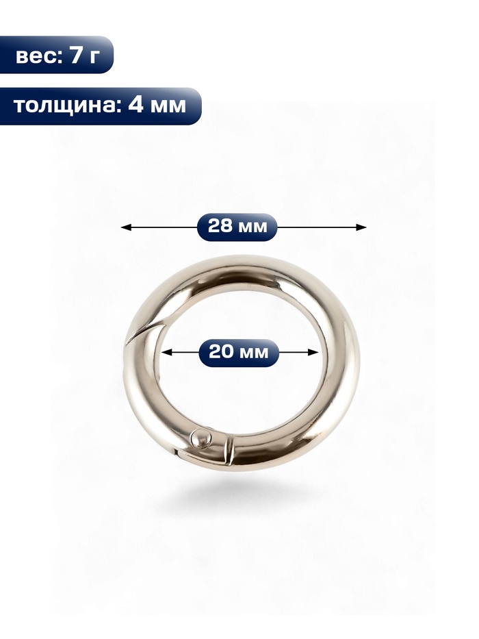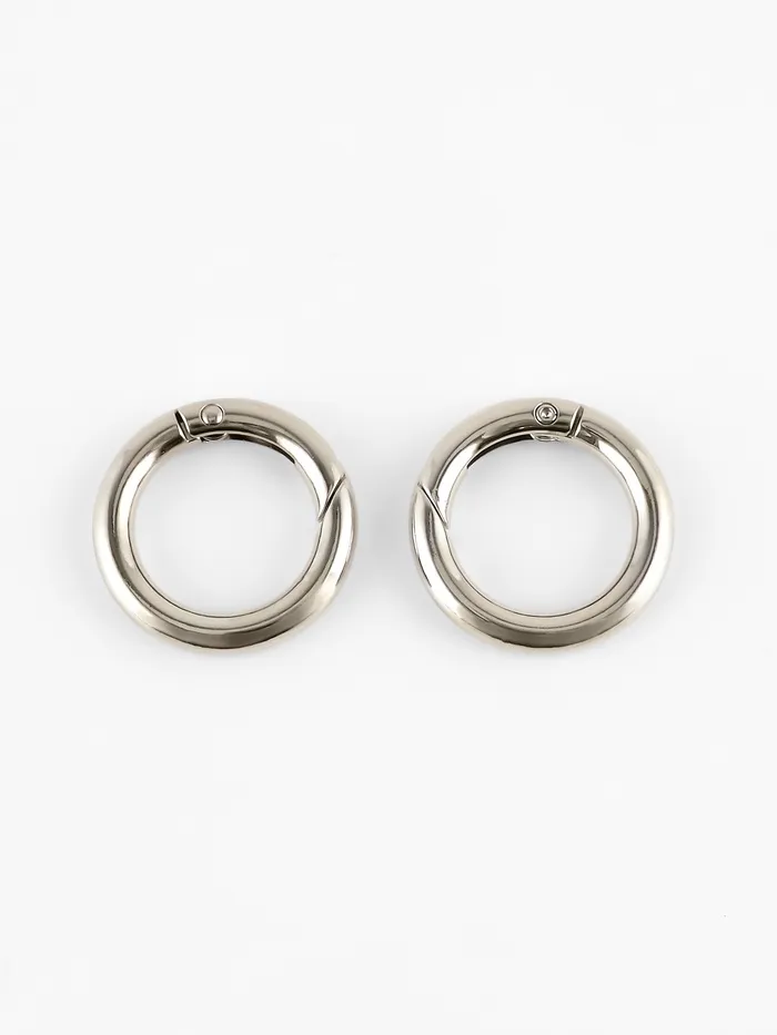 Круглые металлические карабины в серебристом цвете — функциональная фурнитура для сумок, рюкзаков, ремней и брелоков. Лаконичная форма делает их удобными в применении и универсальными для разных материалов. Такие карабины подходят как для ремонта, так и для пошива новых аксессуаров.
