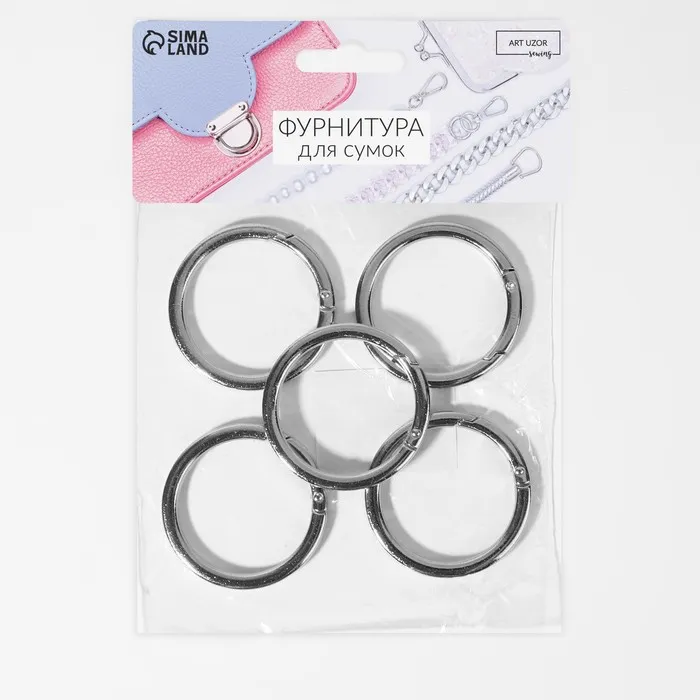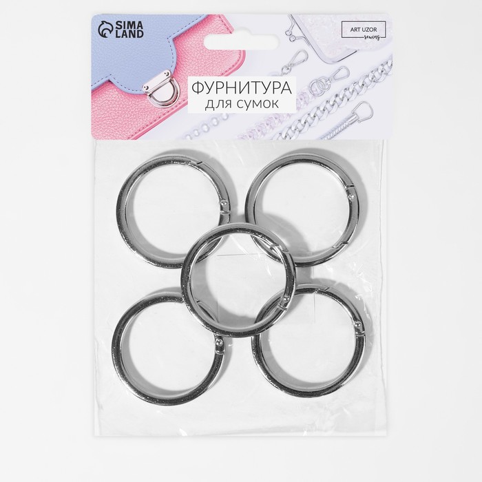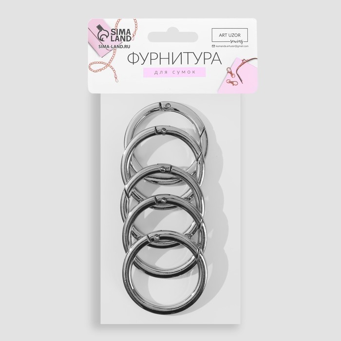 Кольцо-карабин плоский, d = 38/48 мм, толщина - 5 мм, 5 шт, цвет серебряный — Характеристики