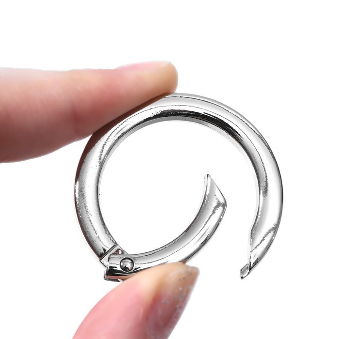 Кольцо-карабин используется для быстрого и удобного крепления различных предметов, таких как ремни, цепочки или подвески. Кольцо-карабин выполнено из прочного металла, что делает его надёжным и долговечным.
