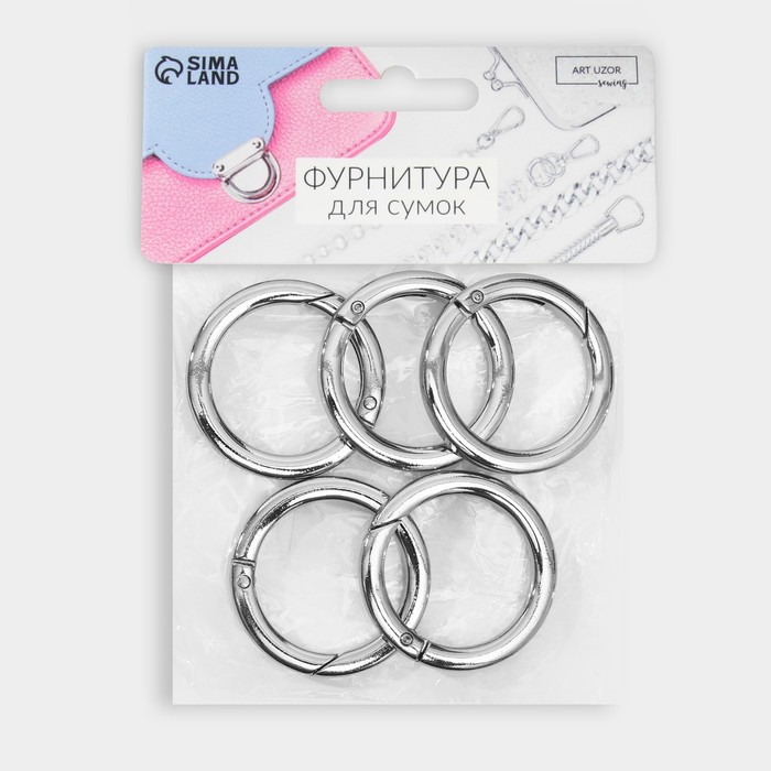 Кольцо-карабин плоский, d=32/42 мм, толщина - 5 мм, 5 шт., цвет серебряный — Характеристики