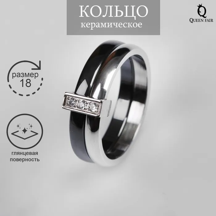 Кольцо керамика «Дуэт», чёрное в серебре, 18 размер — Характеристики
