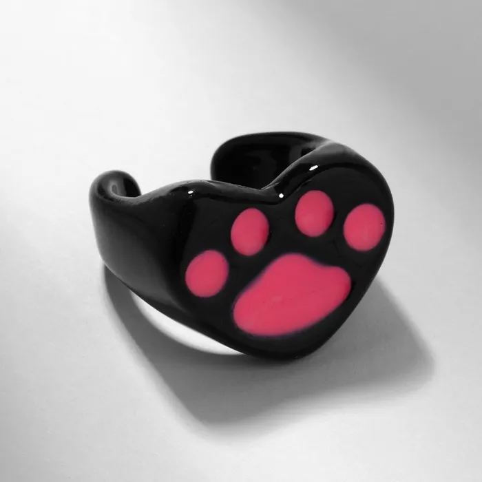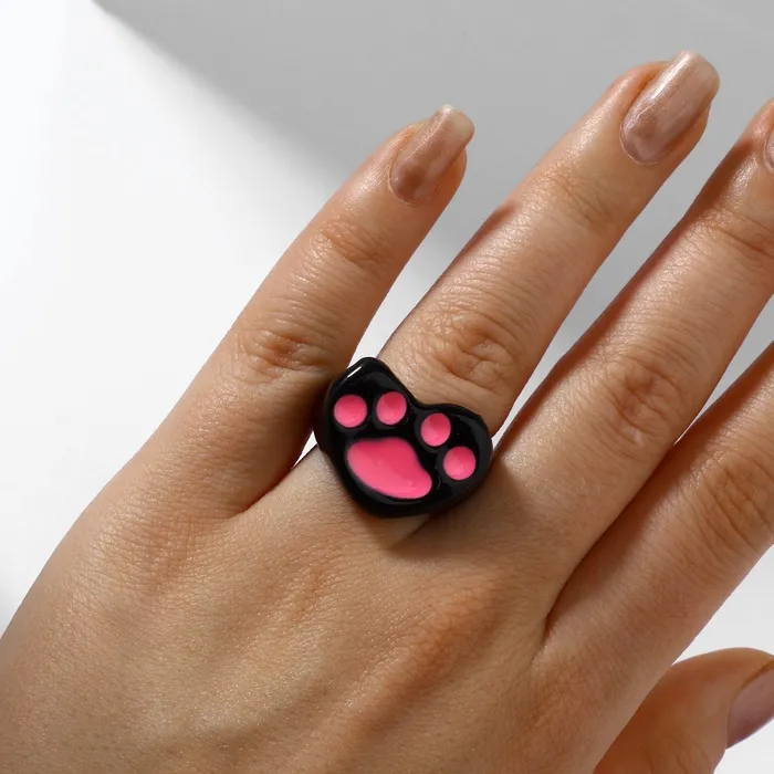 Кольцо «Лапка», цвет чёрно-розовый, безразмерное — Характеристики