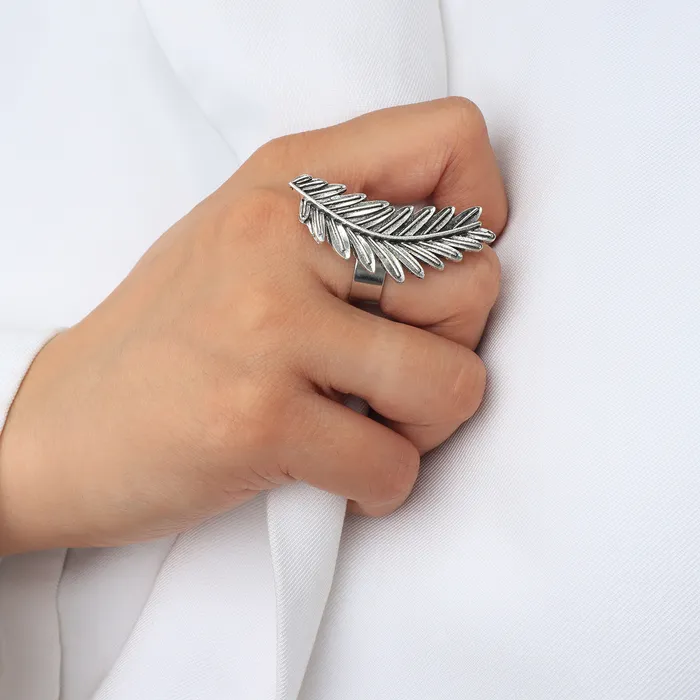 Кольцо «Лист» папоротник мини, цвет чернёное серебро, безразмерное — Характеристики