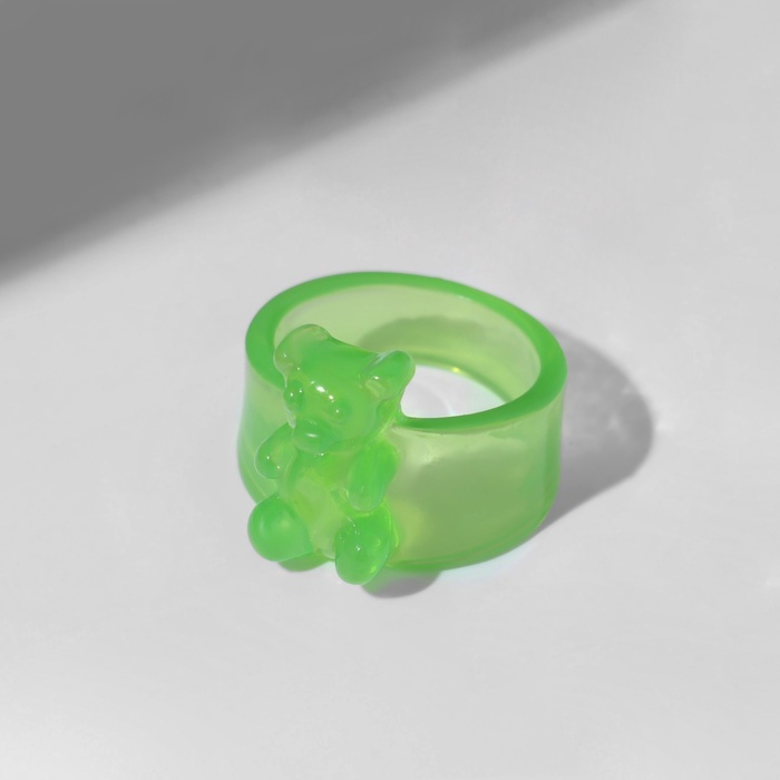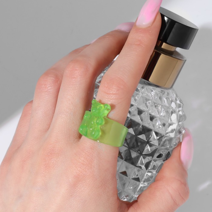 Кольцо «Мармеладный мишка» широкое, цвет зелёный, размер 18