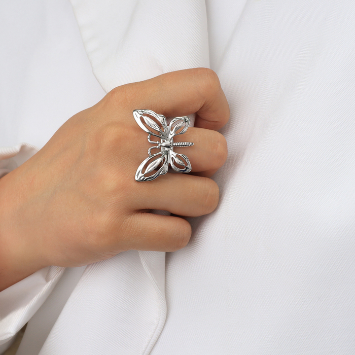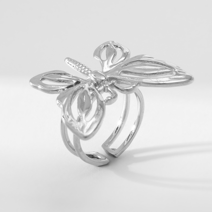 Кольцо металл «Бабочка» контур, цвет серебро, безразмерное