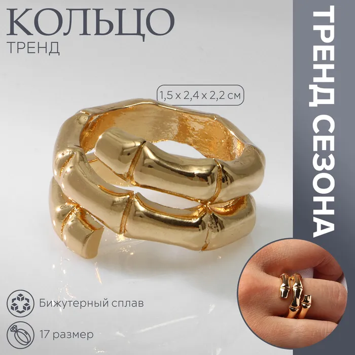 Кольцо металл «Тренд» бамбук, цвет золото, размер 17 — Характеристики