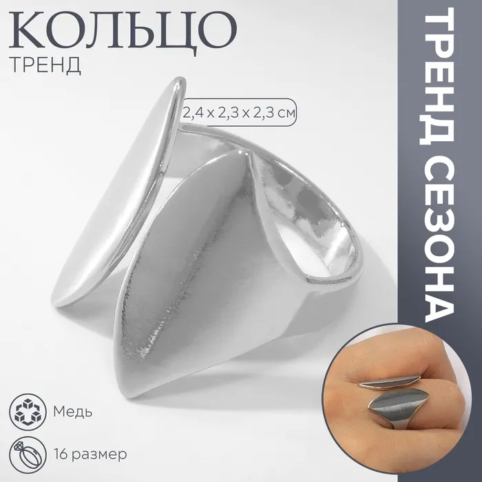Кольцо металл «Тренд» два лепестка, цвет серебро, размер 16 — Характеристики