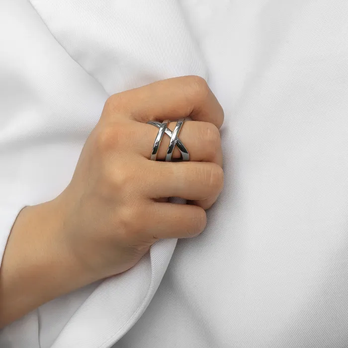 Кольцо металл «Тренд» двойное сечение, цвет серебро, размер 18 — Характеристики