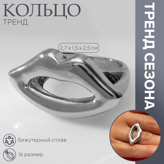 Кольцо металл «Тренд» губы, цвет серебро, размер 16 — Характеристики