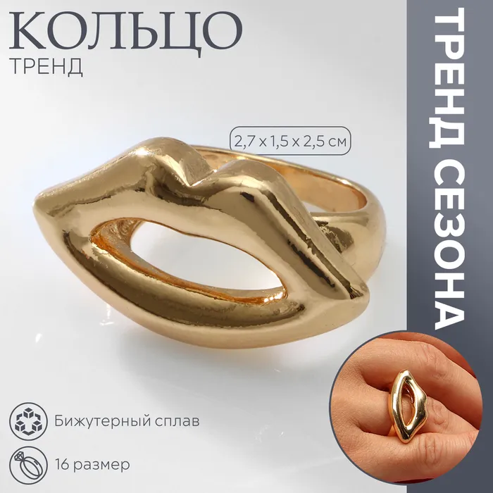 Кольцо металл «Тренд» губы, цвет золото, размер 16 — Характеристики