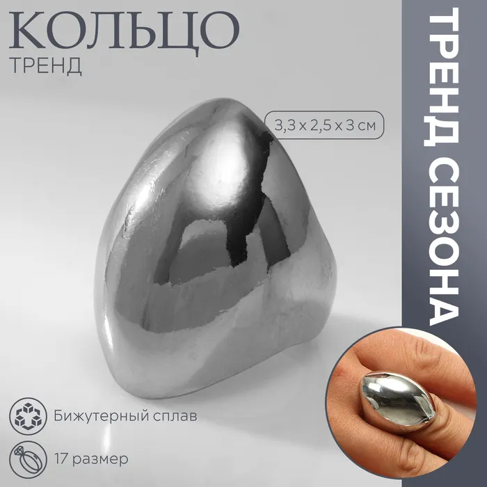 Кольцо металл «Тренд» купол, цвет серебро, размер 17 — Характеристики