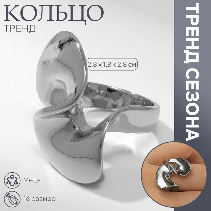 Кольцо металл «Тренд» марс, витое, цвет серебро, размер 16 — Характеристики