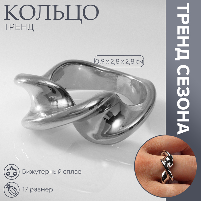 Кольцо металл «Тренд» перекрученное, цвет серебро, размер 17