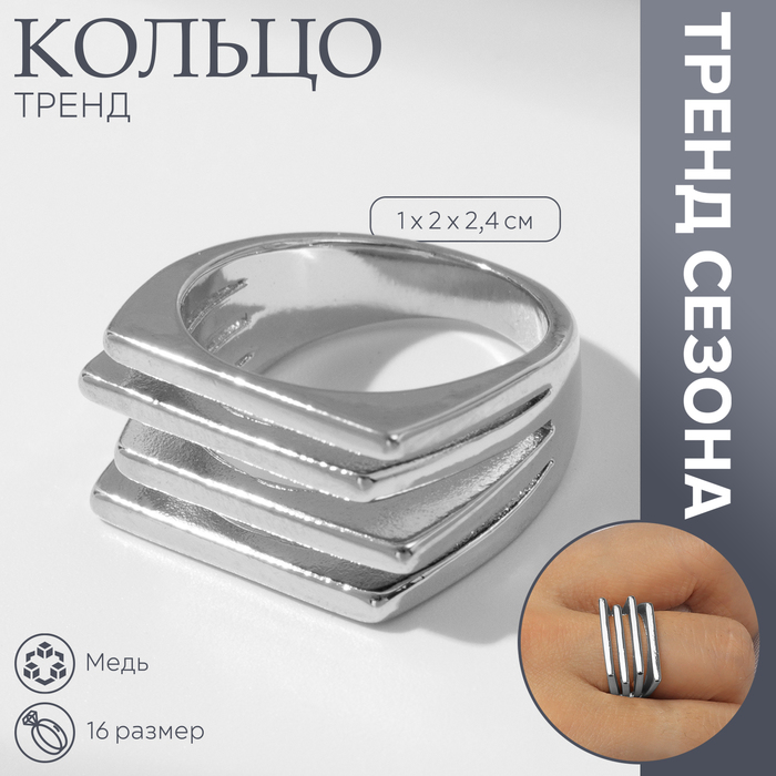 Кольцо металл «Тренд» полосы, цвет серебро, размер 16 — Характеристики