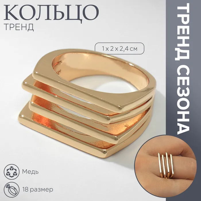 Кольцо металл «Тренд» полосы, цвет золото, размер 18 — Характеристики