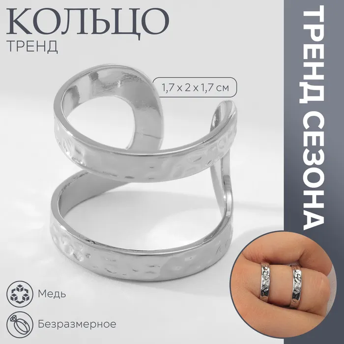 Кольцо металл «Тренд» три полосы, кратеры, цвет серебро, безразмерное — Характеристики