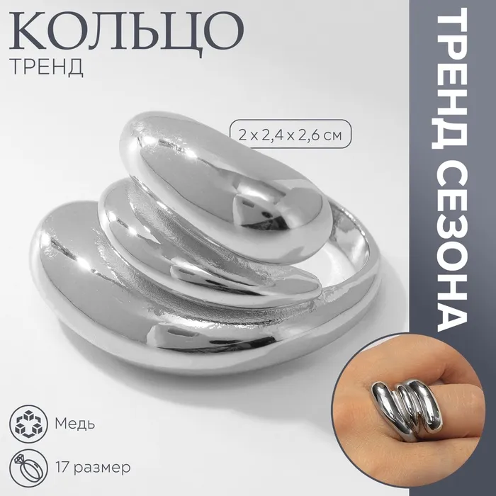 Кольцо металл «Тренд» тройная волна, цвет серебро, размер 17 — Характеристики