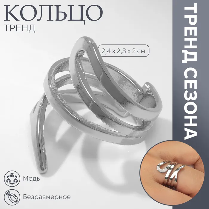 Кольцо металл «Тренд» витое, цвет серебро, безразмерное — Характеристики