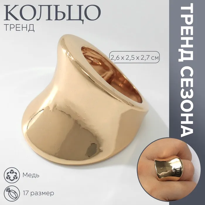 Кольцо металл «Тренд» вогнутое, цвет золото, размер 17 — Характеристики