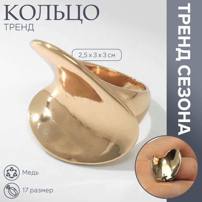 Кольцо металл «Тренд» волна, цвет золото, размер 17 — Характеристики