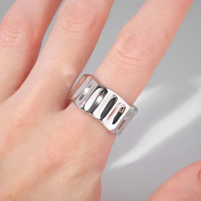 Кольцо «Мятые линии» рельеф, цвет серебро, безразмерное — Характеристики
