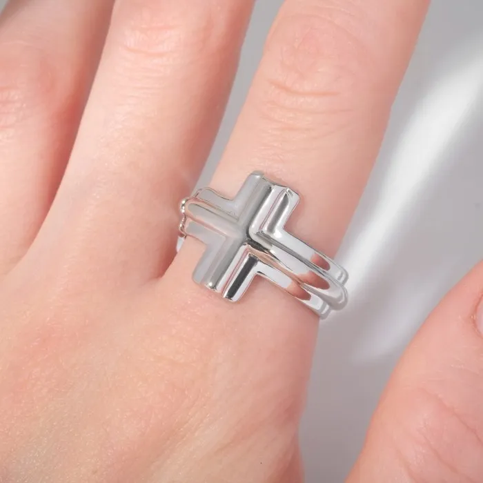 Кольцо «Минимал» крестик, цвет серебро, безразмерное — Характеристики