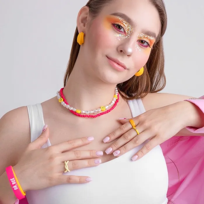 - Яркий акцент: жёлтый цвет и розовая вставка придают кольцу свежесть и оригинальность, делая его идеальным для повседневного ношения и особых случаев.