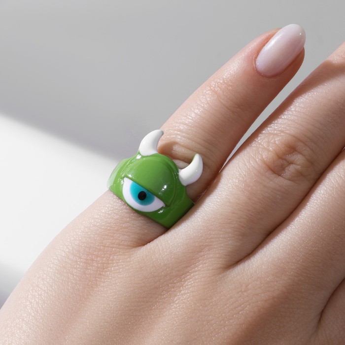 Кольцо «Монстрик» с рожками и глазом, цвет зелёный, безразмерное — Характеристики
