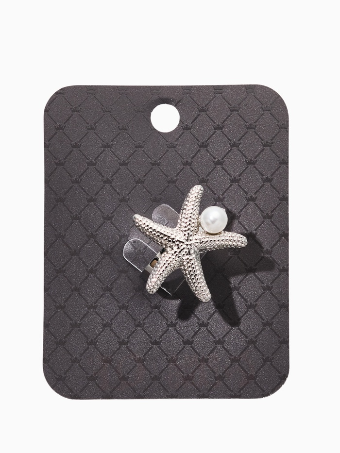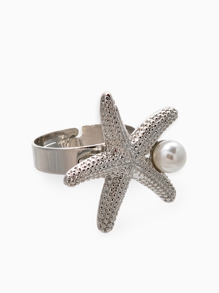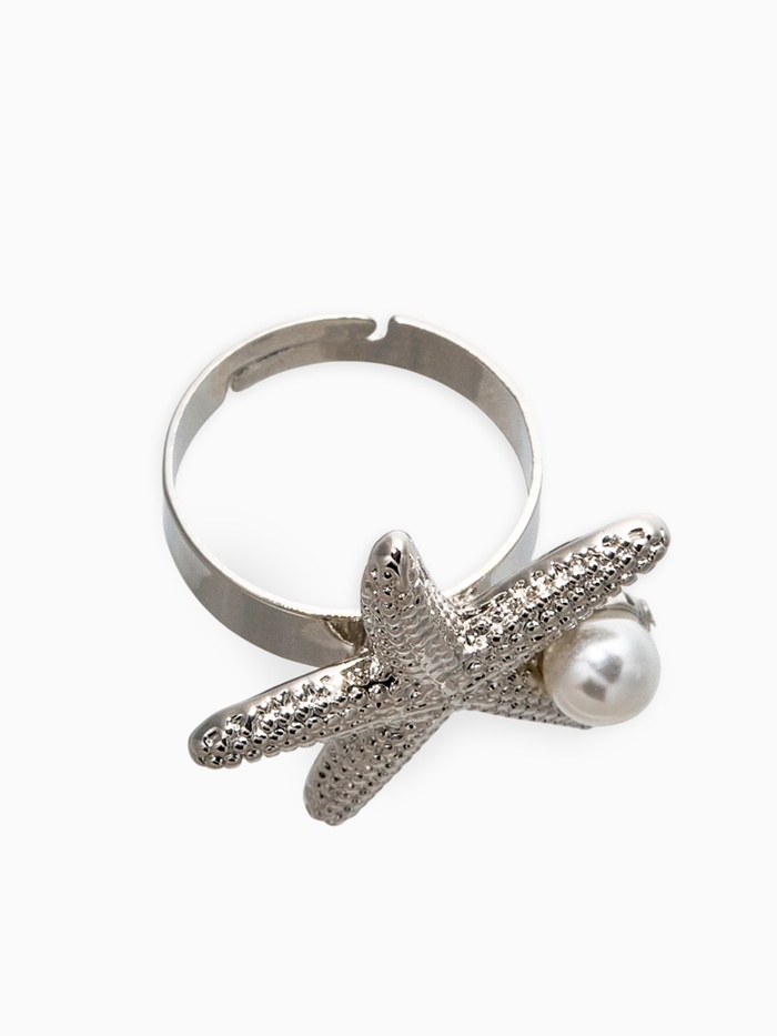 Кольцо "Морская звезда" с бусиной, безразмерное, цвет белый в серебре — Характеристики