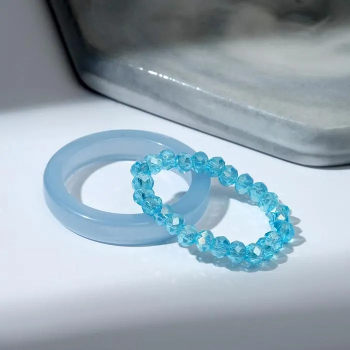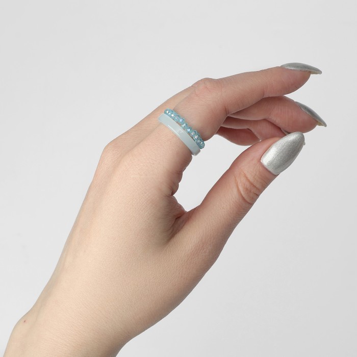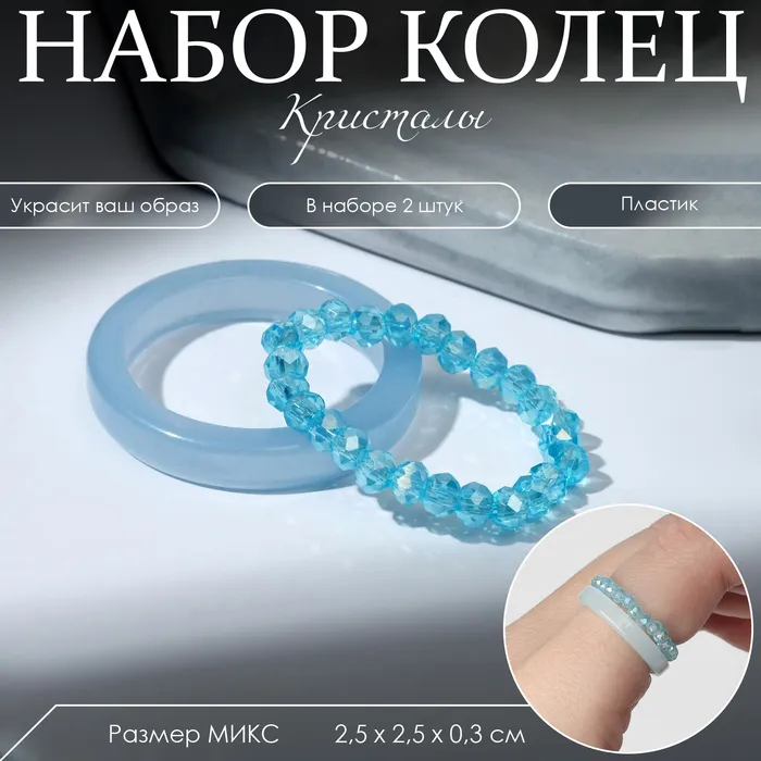 Кольцо набор 2 штуки «Кристаллы» камешки и плавность, цвет голубой, размер МИКС — Характеристики