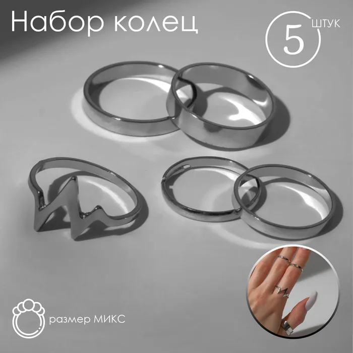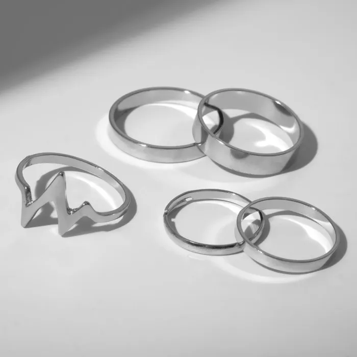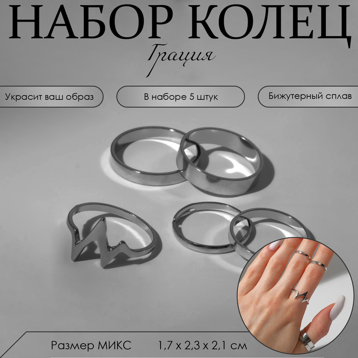 Кольцо набор 5 штук «Грация», размер МИКС, цвет серебро — Характеристики