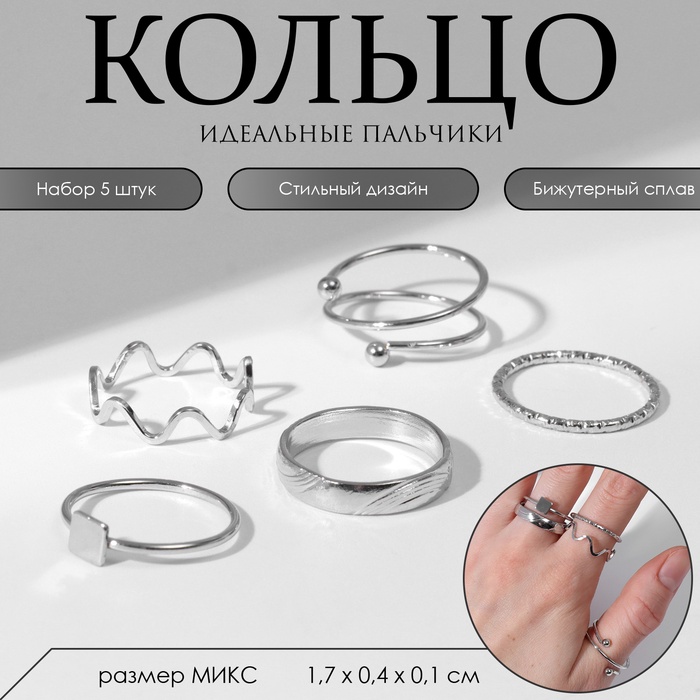Кольцо набор 5 штук «Идеальные пальчики» аура, цвет серебро — Характеристики