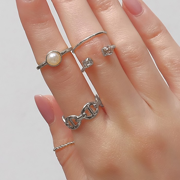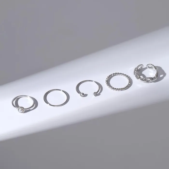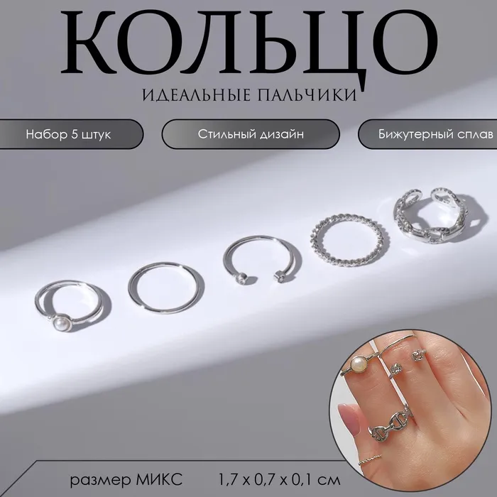 Кольцо набор 5 штук «Идеальные пальчики» блеск, цвет белый в серебре — Характеристики