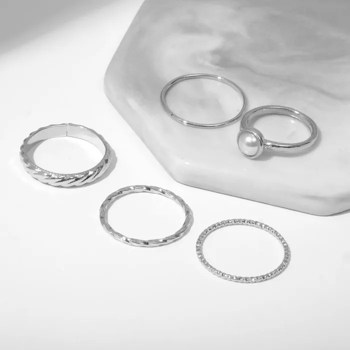 Кольцо набор 5 штук «Идеальные пальчики» грация, цвет белый в серебре — Характеристики