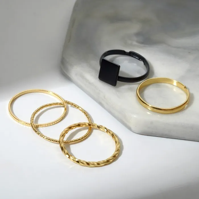 Кольцо набор 5 штук «Идеальные пальчики» мерцание, цвет чёрно-золотой — Характеристики