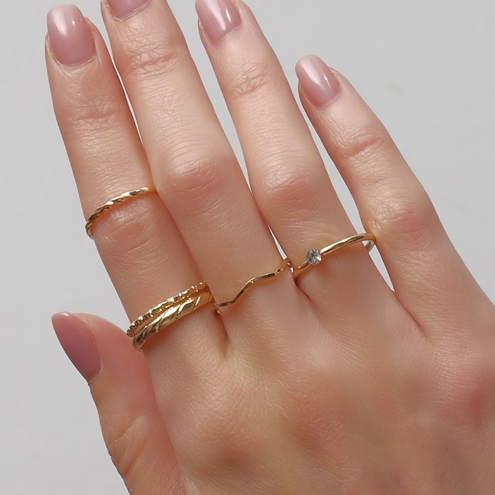 Кольцо набор 5 штук «Идеальные пальчики» свечение, белое в золоте — Характеристики