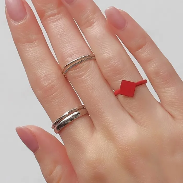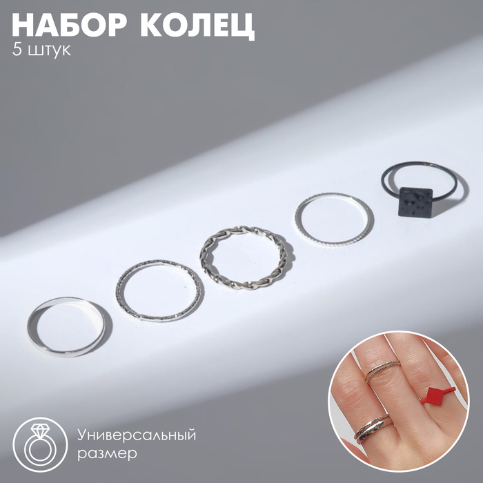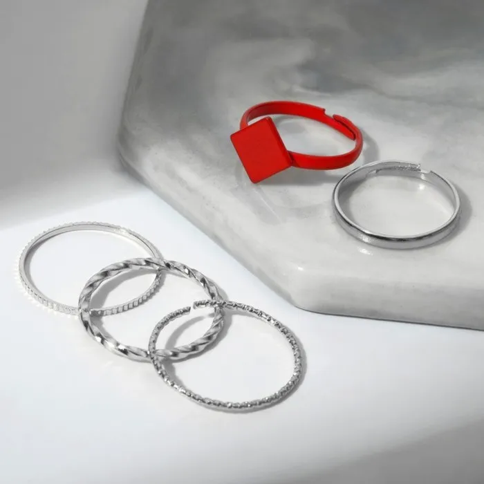 Кольцо набор 5 штук «Идеальные пальчики» узор, цвет красно-серебряный — Характеристики
