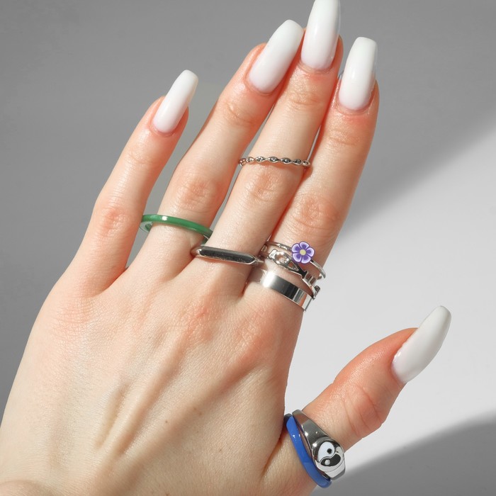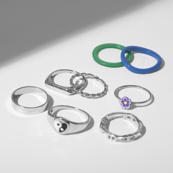 Кольцо набор 8 штук «Мечта» инь-ян, цветной с серебром, размер МИКС — Характеристики