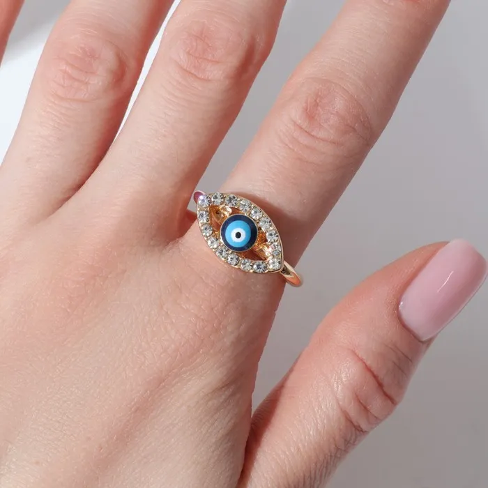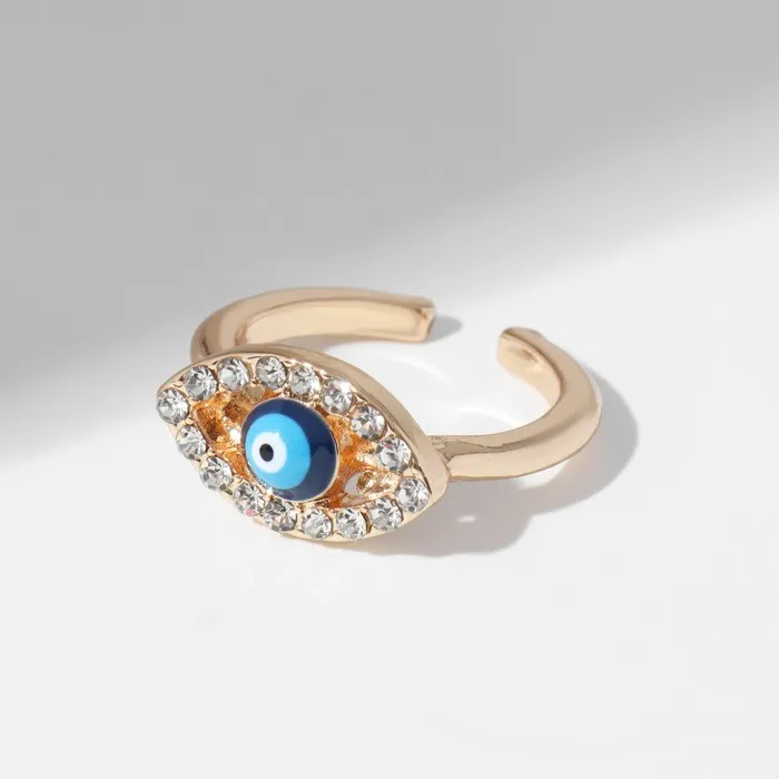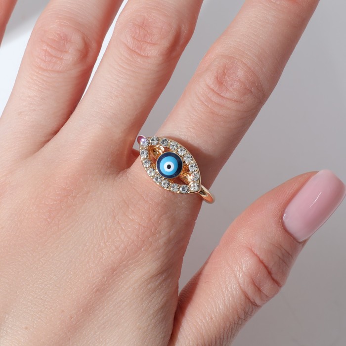 Кольцо «Оберег» глаз, классика, цвет бело-синий в золоте, безразмерное — Характеристики