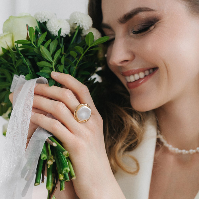 Кольцо «Перламутр» круг, цвет белый в золоте, безразмерное — Характеристики