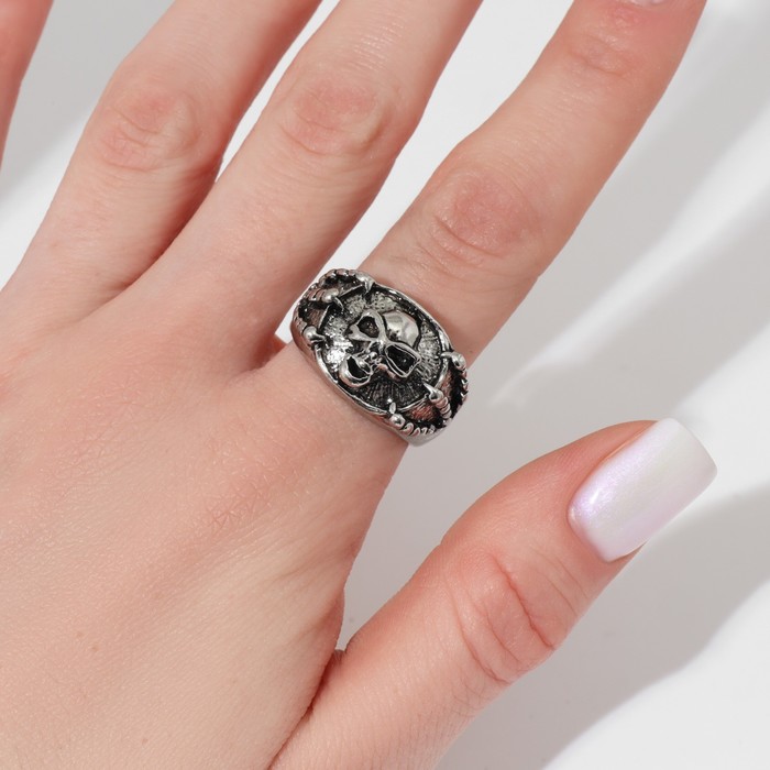 Кольцо «Перстень» череп и когти, цвет чернёное серебро, 18 размер — Характеристики