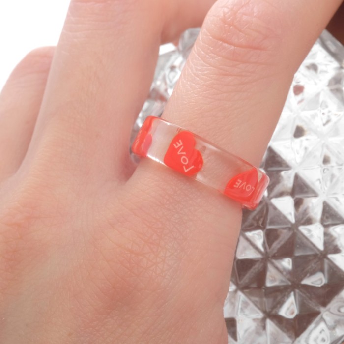Кольцо «Прозрачное» сердца, цвет красный, 17 размер — Характеристики