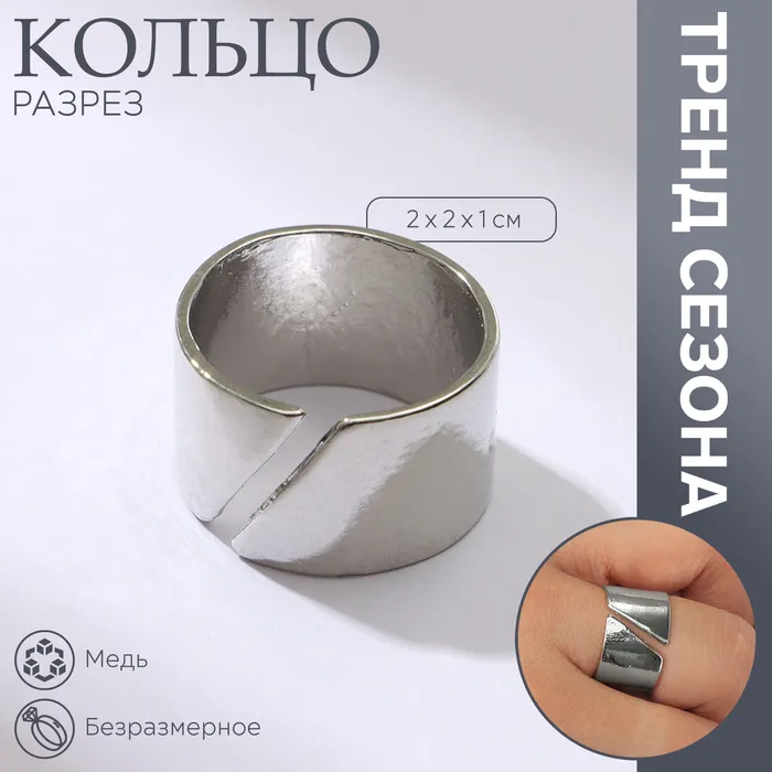 Кольцо «Разрез» тренд, цвет серебро, безразмерное — Характеристики