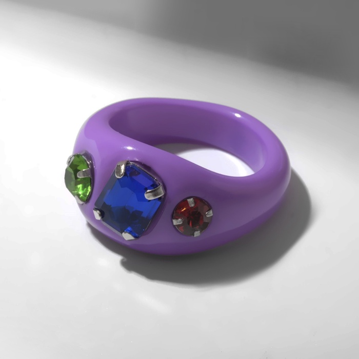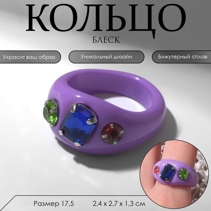 Кольцо с камнем «Блеск», пластик, фиолетовый, размер 17.5 — Характеристики
