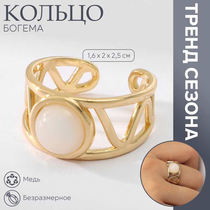 Кольцо с камнем «Богема», безразмерное, белое в золоте — Характеристики